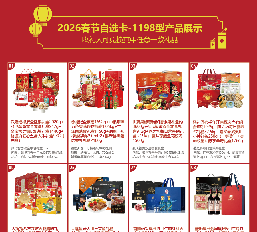 浓情春节,新意好礼,开启全新送礼方式!精挑细选不如让TA自选,礼品卡册自选模式,让员工/客户自己挑选喜爱的礼品,满意度更高!